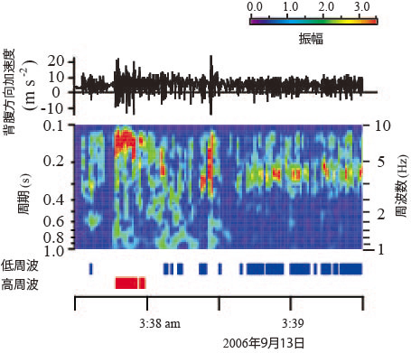まず、扱えるデータ数にソフト上の制限が無いというのが私たちにとっては非常に重要です。例えば加速度データなどは 1秒間に数十個という高頻度で数日間にわたって記録されるため、これを扱える Igor Pro は非常に便利です。加速度波形を解析する際には Igor Pro に標準装備されているウェーブレット変換機能が役に立ちます。動物の動きに応じた様々な周期の波形が、加速度時系列データ上には複雑に含まれていますが、ウェーブレット変換によりスペクトログラムを描くと、時々刻々どのような周期の成分が含まれていたのかを容易に見ることができます。あるいは、まだ使い始めたばかりですが、画像解析機能も備わっているので、動物搭載型カメラによって得られる数千枚に及ぶ画像データを解析することにも有用です。何らかの測器により連続記録する様な場合、しばしばデータ長が数万行以上になります。そのような時系列データを図示したり、それを使って計算を行うということを考えている人にお勧めします。