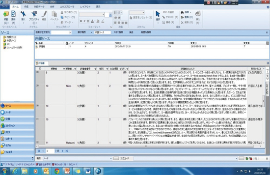 模擬授業の評価者のコメントをスクリプト化するときによく活用します。また音声が不明瞭で聞き取れない場合などや音声を確認するために模擬授業者の動画を取り込むとき、よく使います。そしてスクリプト化したものを分析する際にはデータの「コーディング」と「ノード」です。特に「ノード」を振り分ける際には細心の注意を払い、独りよがりの解釈にならないように気を付けています。しかし、研究者の主観はどうしても入りますのでその信頼性を高めるように別の研究者に協力をしてもらい「ノード」の振り分けの信頼性を高めるよう進めています。