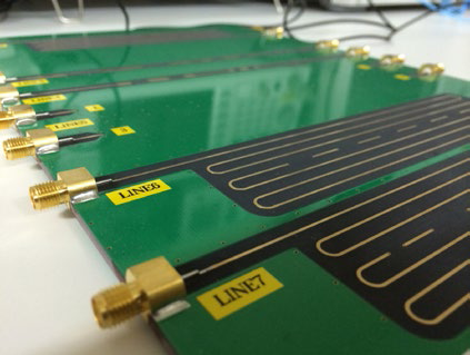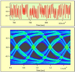 <>プリント基板上の電気配線 (Micro-strip line) について、高周波数測定器 (ネットワークアナライザ) で測定した周波数特性を用いた伝送シミュレーションを IGOR プログラムにて実施している。さらに、種々のディジタル信号処理技術を適用した波形整形について IGOR プログラム上にてシミュレーションし、結果の表示および評価を行っている。特に、IGOR Pro のグラフ機能を応用し、実際の測定器 (オシロスコープ) と同様な波形表示を実現し、評価を行っている。