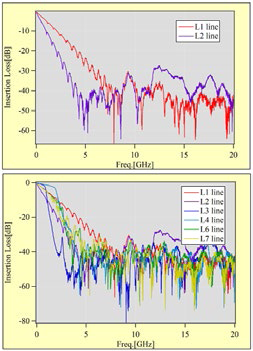 IGOR Pro を用いて、実測したプリント基板配線などの周波数特性データの解析とグラフ描画、さらに実測した特性に基づく伝送シミュレーションの実行および結果の表示・解析を行っている。特に、シミュレーションでは、IGOR Pro に組み込まれているフーリエ変換、ヒストグラムや複素数演算等の充実した関数を利用して、伝送特性の詳細な評価・検証が可能である。