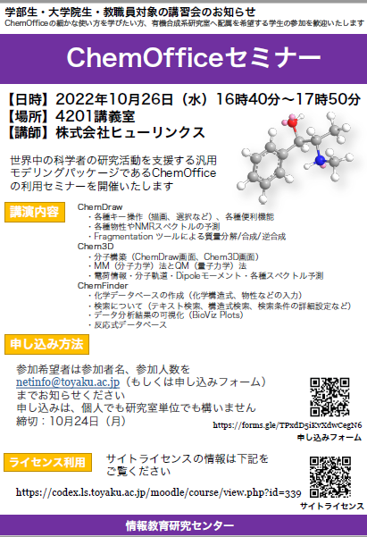 上記ミッションの一環で、本学の学生は ChemOffice サイトライセンスを用いた情報の授業を履修することができます。