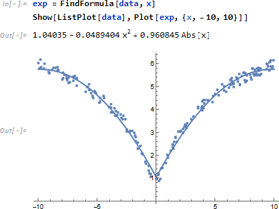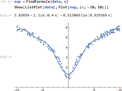 こんな複雑なデータに対しても FindFormula はプロット式を推定してくれます。