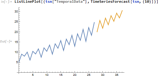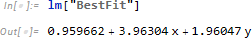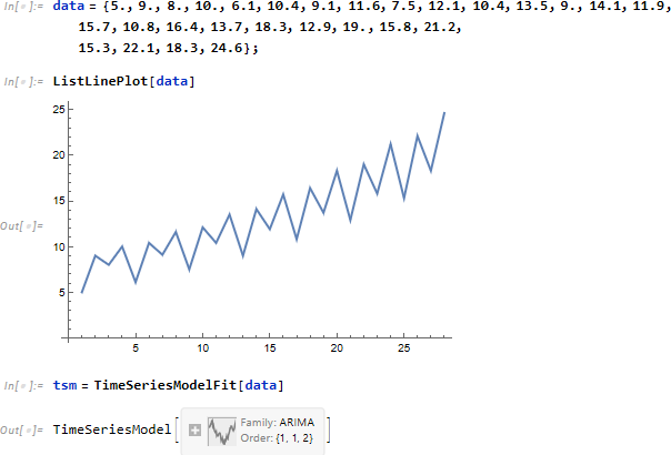 与えられたデータが時系列を形成することがわかっている場合は、TimeSeriesModelFit 関数が使えます。
