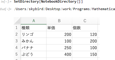 カレントディレクトリに以下のような Excel ファイルがあるとします。