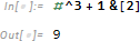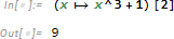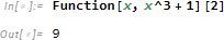 関数は f (x )=x+1 のように名前 (ここでは f ) をつけて使うイメージがありますが、関数の本質は引数と本体のみで、Function はこれを実現します。次の例は、仮引数 x 、本体 x^3+1 からなる関数に実引数 2 を渡し、結果 9 を得ます。