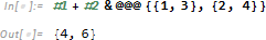 ただし2引数を想定した場合、/@ をそのまま使うことはできず、次のように @@@ (MapApply) 書かなければなりません。