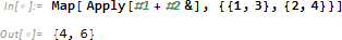 なぜ Apply を必要とするのでしょう。#1+#2& を関数 f としたとき、Map[f, {{a,b}}] に対し、f{a,b} (エラー!) となるのを、 Apply[f, {a,b}] = f[a,b] によって防ぐためです。
