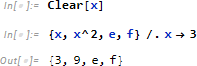 /. の左辺に対し、 の左辺で指定した変数を の右辺の値で置き換えます。