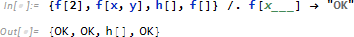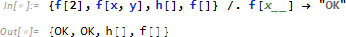 関数形式 f[...] に対し、引数が1個以上のもの「すべて」を “OK” で置き換えます。