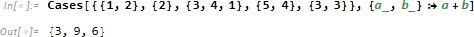 リストを要素とするリストからペアだけを集め、当該ペアの要素の和からなるリストを返します。