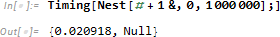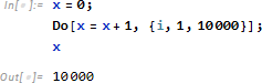たとえば次のような例、x の初期値 0 に対し、1 を1万回加える、を考えます。