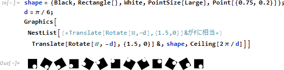 を使い、回転移動させます。Rotate によって回転させながら、Translate によって位置移動を行っています。