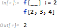 _」は blank と呼ばれ、引数パターンとして使われます。パターン「__」 (blank 2個) は1個以上の引数にマッチします。この場合、3引数にマッチし、結果 2 を得ています。