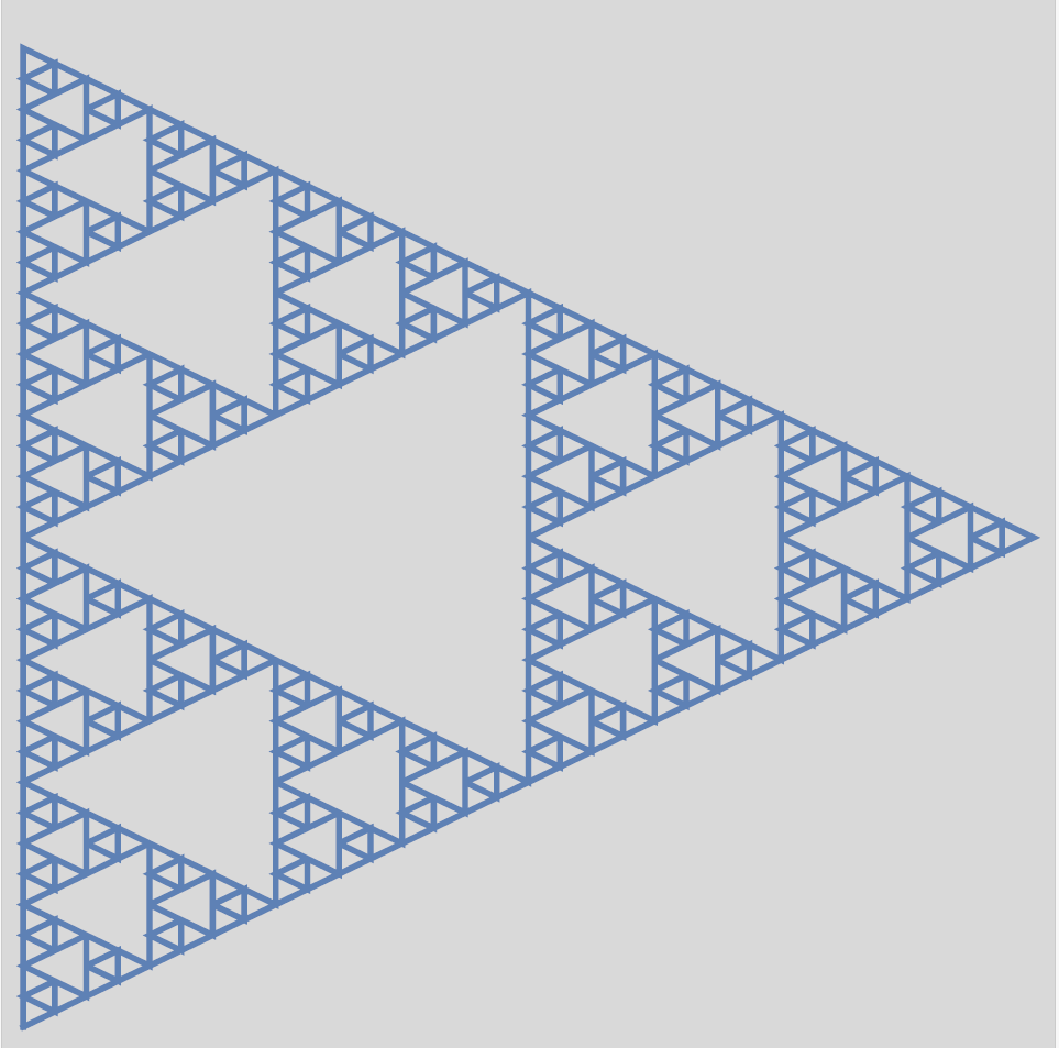 「プログラミング」では、ルールベースドプログラミングを扱い、フラクタル図形の描画を含む題材を取り上げています。また、手続き型プログラミングも扱い、同じ授業科目でさらに学ぶプログラミング言語の授業へ接続する内容を行っています。
