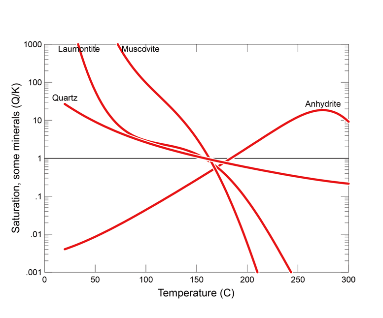 地熱発電に必要な三要素の一つである “地下構造 (地熱流体が貯留されている構造で断層割れ目などの空隙)” に存在する地熱流体の温度を推定する Geothermometry 解析に React を使用しています (図 1)。Geothermometry 解析では、分析した水質分析の結果を入力して結果を出すだけではなく、Geothermometry への CO2 の脱ガスの影響や未分析の微量元素を考慮した解析を実施しています。また、The Geochemist’s Workbench の熱力学的データベースは一つでだけではなく数種類含まれており、データベースごとの Geothermometry 解析も行ったりしています。
