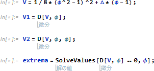 ここでは、ポテンシャル V の極値を求める最初のモジュールで