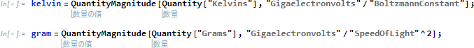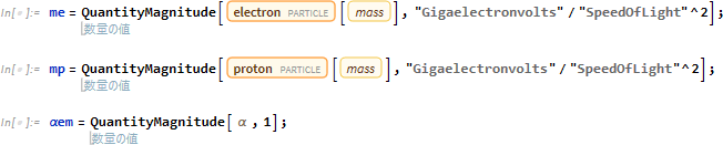 例えば自然単位系への変換定数は以下のようになります。