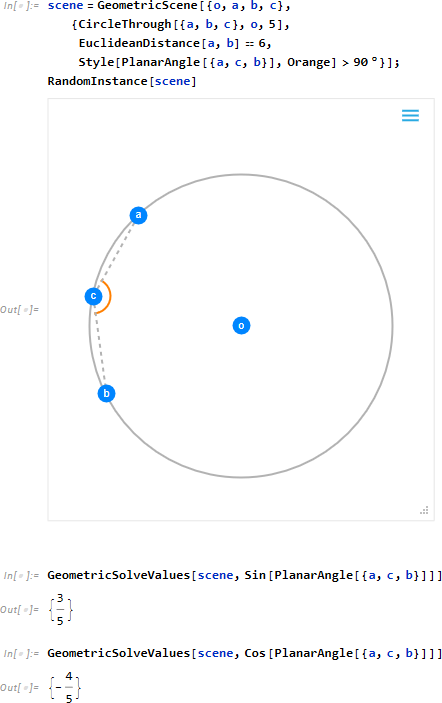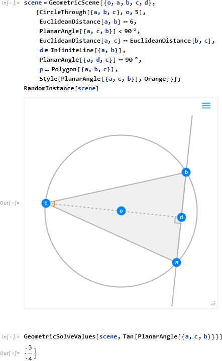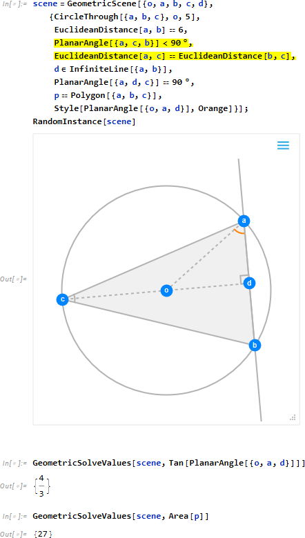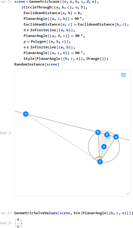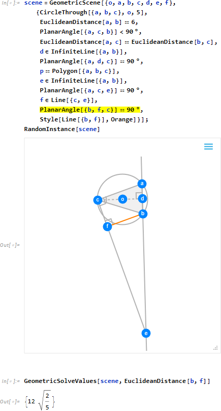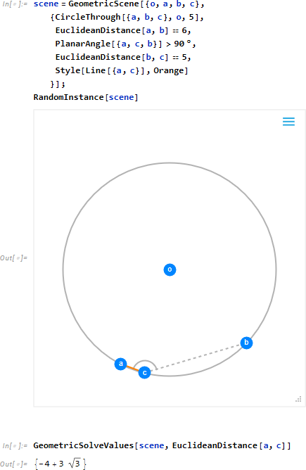 バージョン 12 でのユークリッド合成幾何学の計算可能なバージョンの導入は、素晴らしい機能です。幾何学の問題を解くときに重要な図を描くことができます。バージョン 14 では一歩進んで、幾何学的な数値を求めることができます。