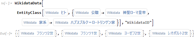 ハプスブルク家が12件、ハプスブルク=ロートリンゲン家が4件という結果が得られました。それぞれの内訳を見てみましょう。抽象化されたデータを復元する作業です。