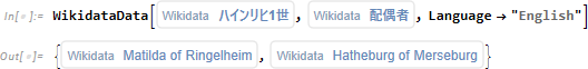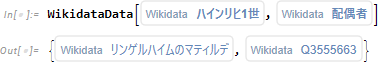 WikidataData 関数で「ハトヴィヒ・フォン・ザクセン」 の 「配偶者」 をとりだします。