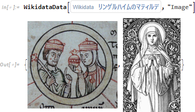 WikidataData 関数を使って「リンゲルハイムのマティルデ」 の画像を取り出して、この人物が家系図の絵と一致するのを確認しましょう。