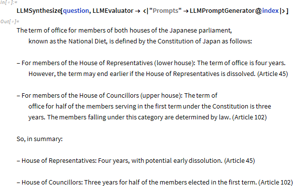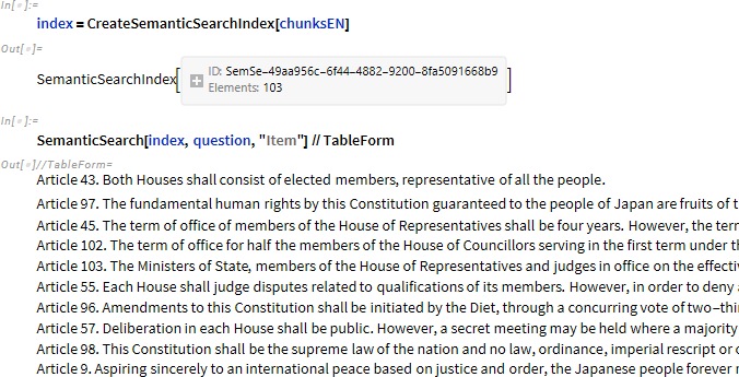 以前、日本国憲法を例にして Wolfram Language で RAG を実装する方法について日本語の投稿をしました。#記事はこちら