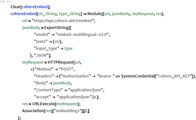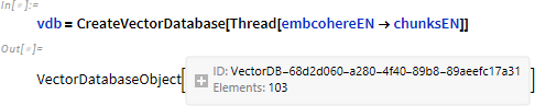 VectorDatabaseSearch もバージョン 14.1 でサポートされているため、cohere embedded-multilingual-v3.0 を使用してベクトルデータベースを作成します。