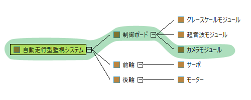 次に「自動走行型監視システム→制御ボード→グレースケールモジュール」ラインを検討します。構造エディタで「制御ボード」を選択します。