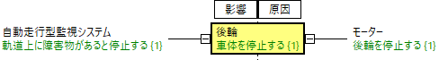 つぎに、「後輪」の「車体に動力を伝える」をフォーカスエレメントに設定します。ここで、自動走行型監視システムのもう一つの機能「軌道から障害物が無くなると走行を再開する」も、おなじく後輪の「車体に動力を伝える」の原因であることがわかります。