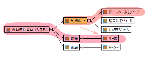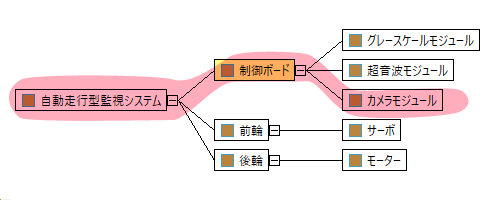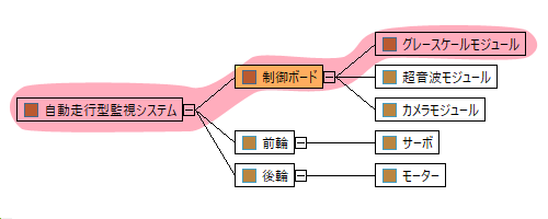 次に「自動走行型監視システム→制御ボード→グレースケールモジュール」ラインを検討します。構造エディタで「制御ボード」を選択します。