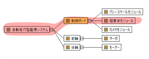 次に「自動走行型監視システム→制御ボード→超音波モジュール」ラインを検討します。構造エディタで「制御ボード」を選択します。