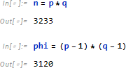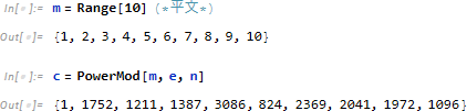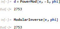 最後に d を求めます。Mathematica では PowerMod もしくは ModularInverse を使うことで求めることが可能です。