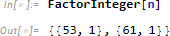 Prime を使って a 番目の素数 と a + 1 番目の素数を求め、その二つの数を使って n を計算し、その結果を FactorInteger に渡して素数を求める関数を定義して実行してみます。