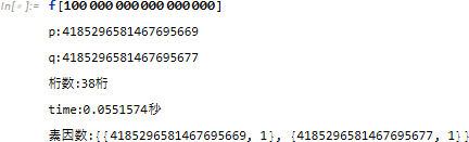 確認できた素数を用いて計算を実行してみると、秘密鍵の桁数は 38 桁で、素因数を求める時間は 0.066 秒でした。この桁数でもすぐに求められ、まだ安全性は無いようです。