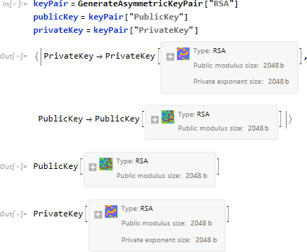 ここまで RSA 暗号を定義に沿って実装してみましたが、Mathematica には組込みの関数も用意されています。