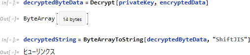 そして復号には Decrypt が、バイト配列から文字列に変換するには ByteArrayToString が使えます。