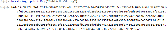 なお、生成された公開鍵の値は “PublicHexString” と指定することで確認が可能です。