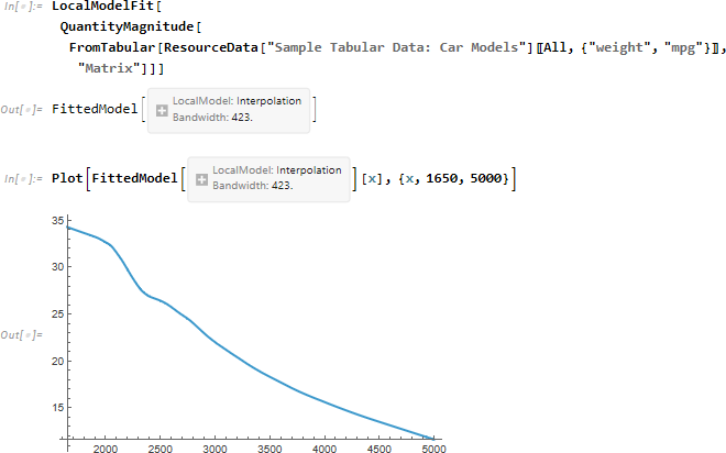 LocalModelFit は、局所多項式回帰 (LOESS) を用いてるノンパラメトリックフィッティング関数です。