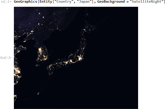 夜間の衛星画像も取得できます。