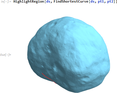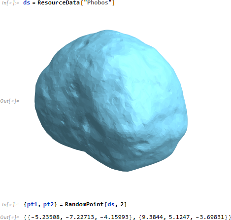 火星の衛星フォボスについて、ランダムな2点間の最短曲線を見つけます。