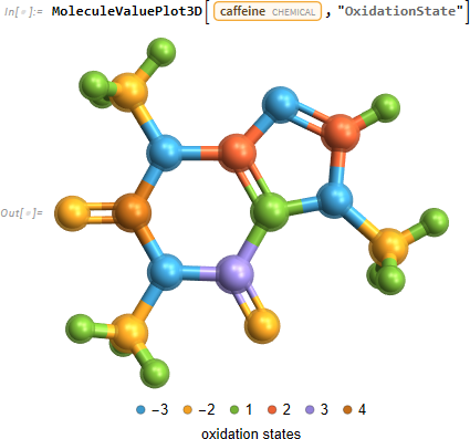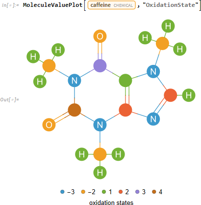 カフェイン分子中の原子の酸化状態は次のようになります。