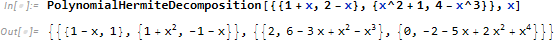 PolynomialHermiteDecomposition は行列のエルミート分解を計算します。