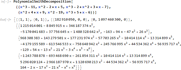 PolynomialSmithDecomposition は行列のスミス分解を計算します。