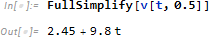 例3:時刻 t=0.5s における距離 r(0.5) の正解を、Mathematica に出力させる。