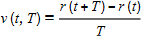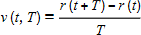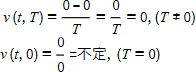 このように速さは入力変数が測定開始時刻 t と測定時間 T の2変数関数になる。 v(t, T) に慣れるため、いくつか例を計算させてみよう。