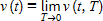 ここで、もともと任意の値を入力可能な変数であった測定時間 T を、瞬間に定めてしまうために、2変数関数 v(t, T)が1変数関数 v(t) になる。この操作を高校数学では「T を0に近づけ (T → 0)、極限 (limit) をとる」と表現し、