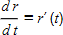 と書くことが出来る。この分子も差分であり、Δ r = r(t+T) – r(t) = r(t+Δ t) – r(t) となる。ゼロ時間 (つまり同時刻) における差分が 0/0 を生み出したことを考えると、速さ