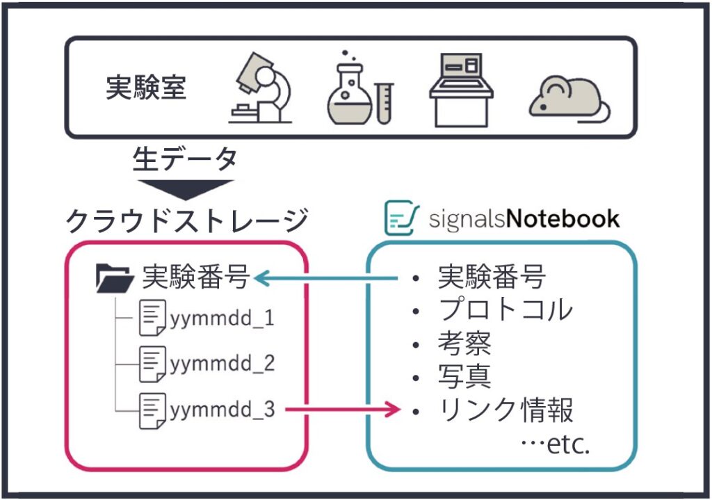 管理を行っていた。電子実験ノートシステムの導入後も、生データの管理は今まで