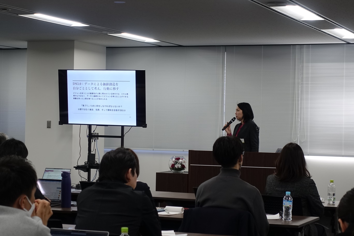 データサイエンス人材教育プログラムMDASH の基本カリキュラム改訂と教育現場での課題について紹介していただきました。