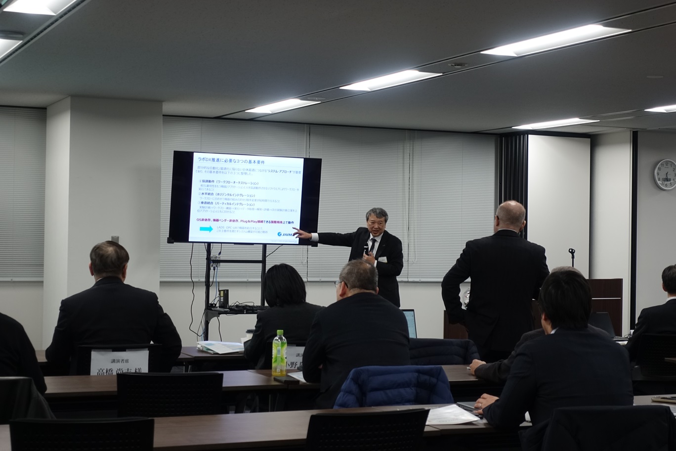 データ駆動型研究を推進するには、リアルデータを生み出すラボのDX 化が不可欠です。また、その基盤となる標準化と人材育成は重要な要素です。これらに関するJAIMAの取り組みを紹介していただきました。